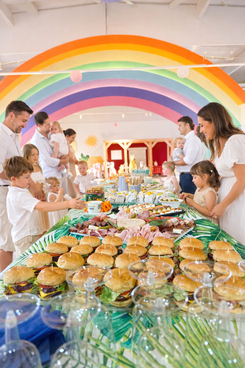 Inclus : un gâteau au choix + Pichets de sirops à l’eau à volonté + bols de bonbons + des ballons + vaisselle jetable + cartons d’invitations numériques à télécharger